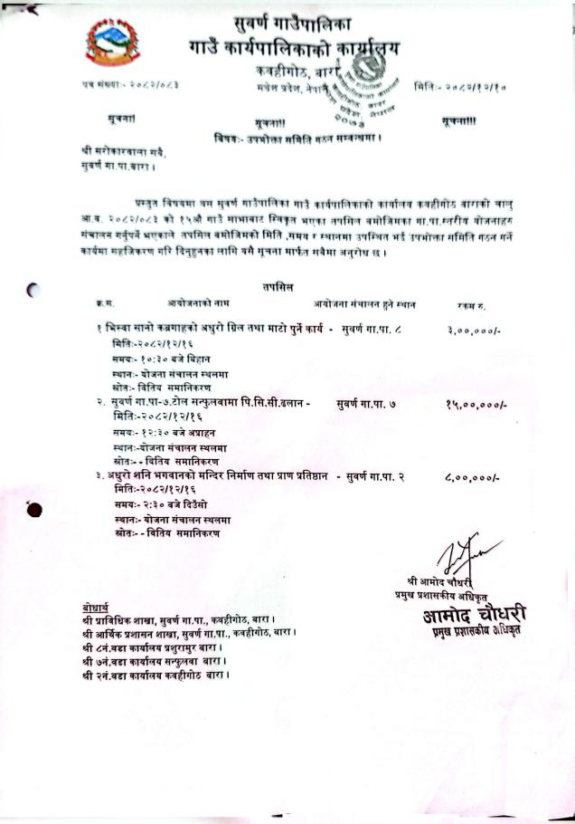 सूचना ! सूचना !! सूचना !!! उपभोक्ता समिति गठन सम्बन्धमा ।