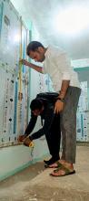 श्री ने रा आ वि सनफुलवामा भएका मर्मत, पार्टिशन, डेस्क बेन्च, कक्षाकोठा र बराण्डा ढलान कार्यको प्र प्र अ द्वारा प्राविधिक टोलीको सहयोगमा स्थगलगत नापजाँच गरी मूल्याङ्कन प्रतिवेदनको बैधता जाँच गरिदै ।