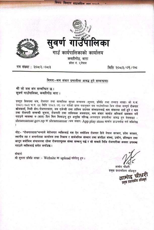 श्रम संसार प्रणाली आबद्ध हुने सम्बन्धमा ।