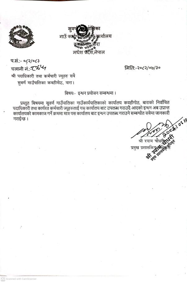 सूचना ! सूचना !! सूचना !!! इन्धन प्रयोजन सम्बन्धमा ।