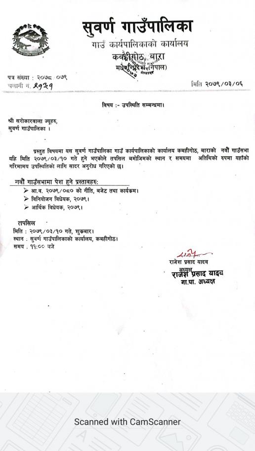 सुवर्ण गाउँपालिकाको गाउँ कार्यपालिकाको बैठक संचालन सम्बन्धी कार्यविधि २०७५