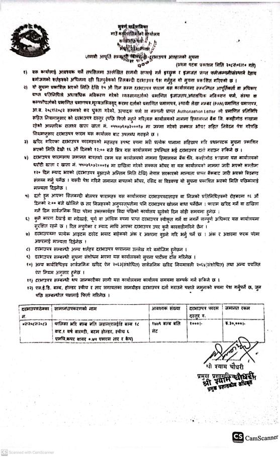 » सूचना ! सूचना !! सूचना !!! सामग्री आपूर्ति सम्बन्धि शिलबन्दी दरभाउपत्र आव्हानको सूचना ।